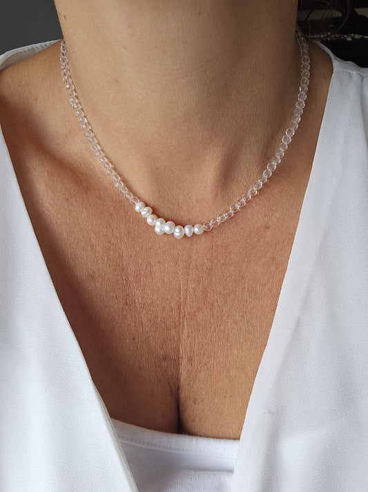 Minimal Pearl & Crystal Necklace