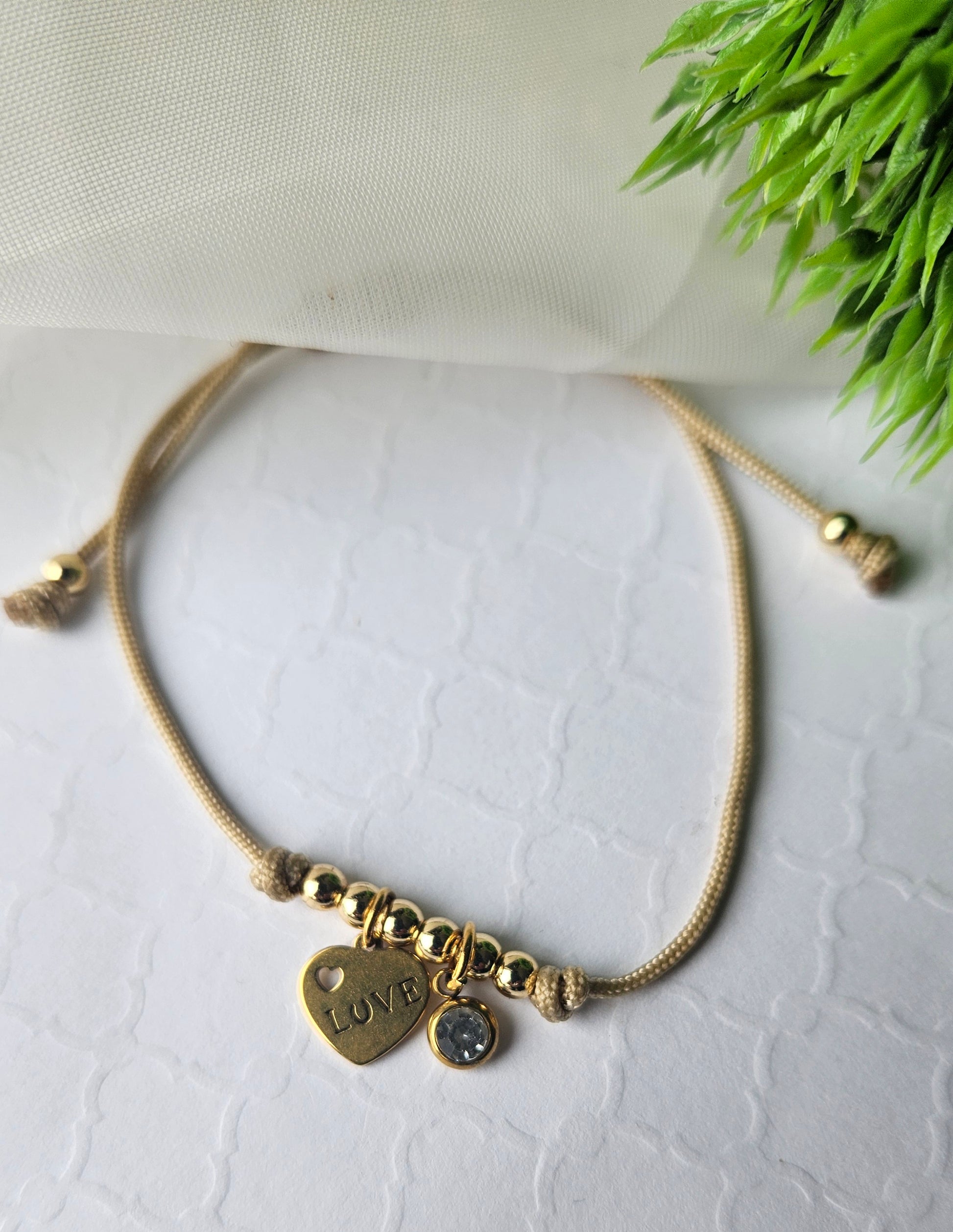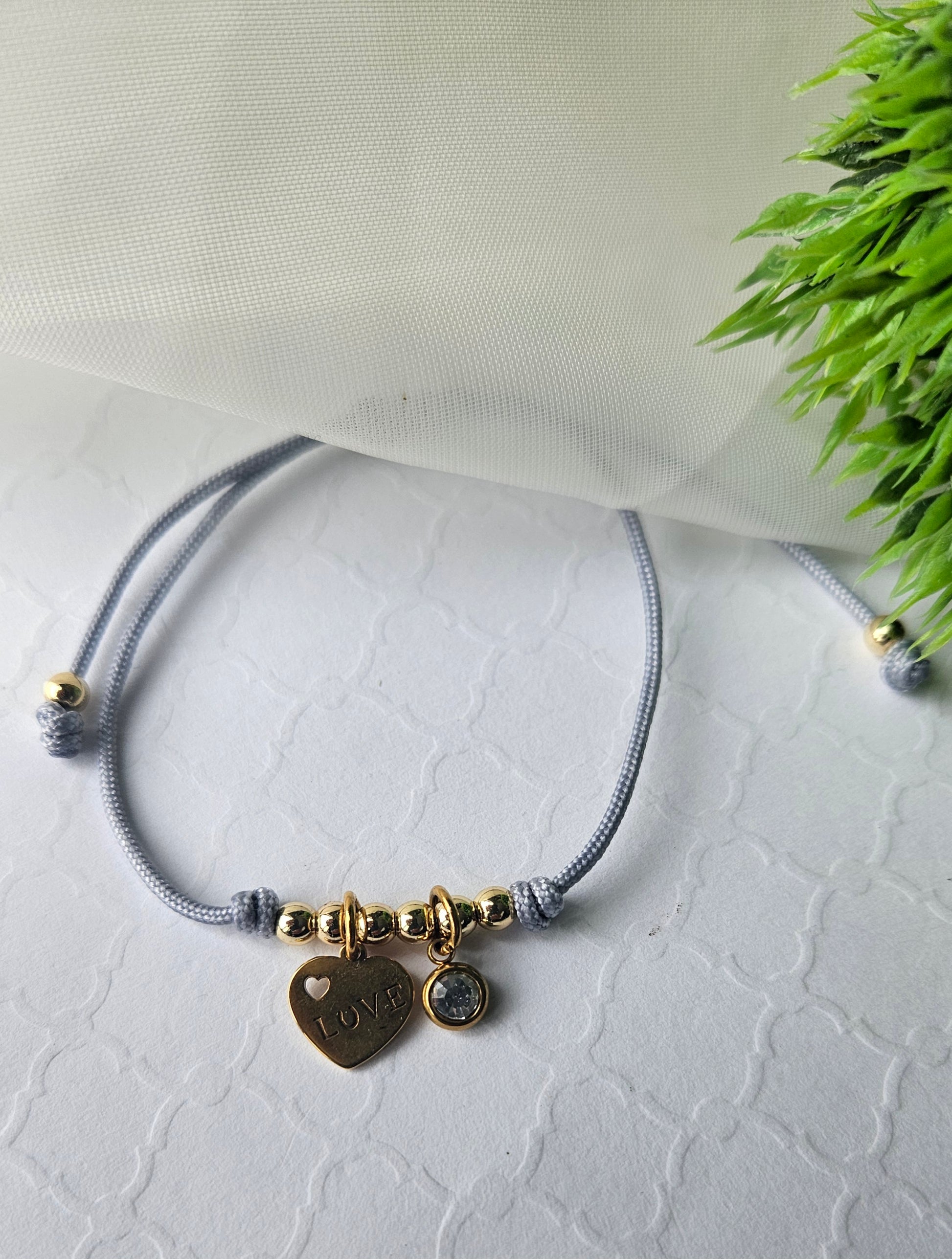 Thread adjustable bracelet- Love heart charm - white crystal charm