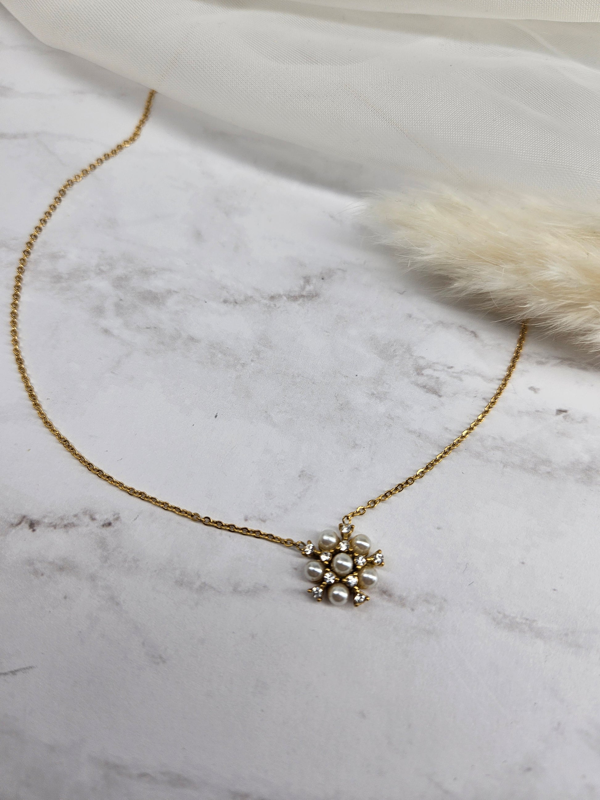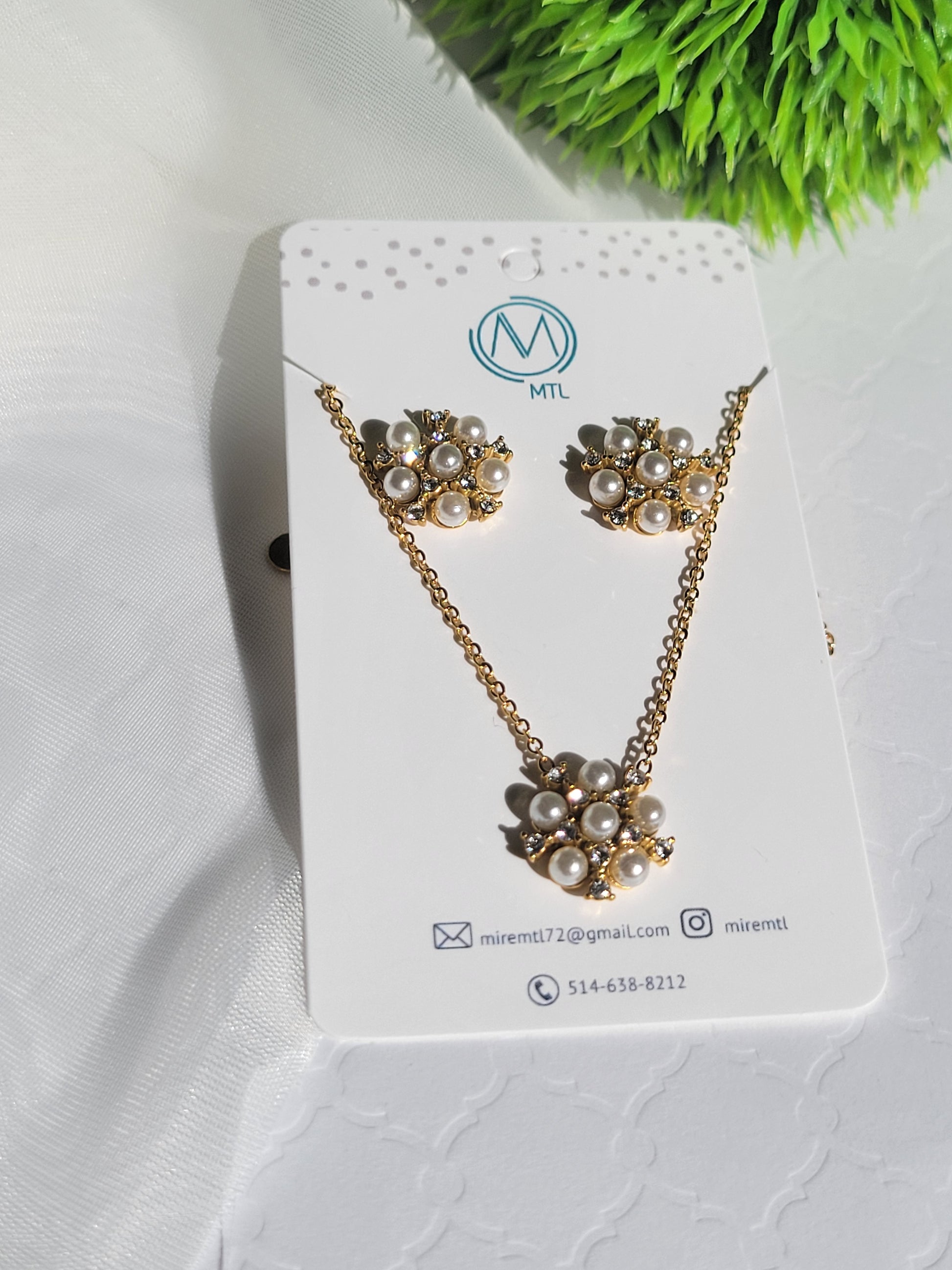Romantic Imitation Pearls Zircon Flower Necklace and Earring