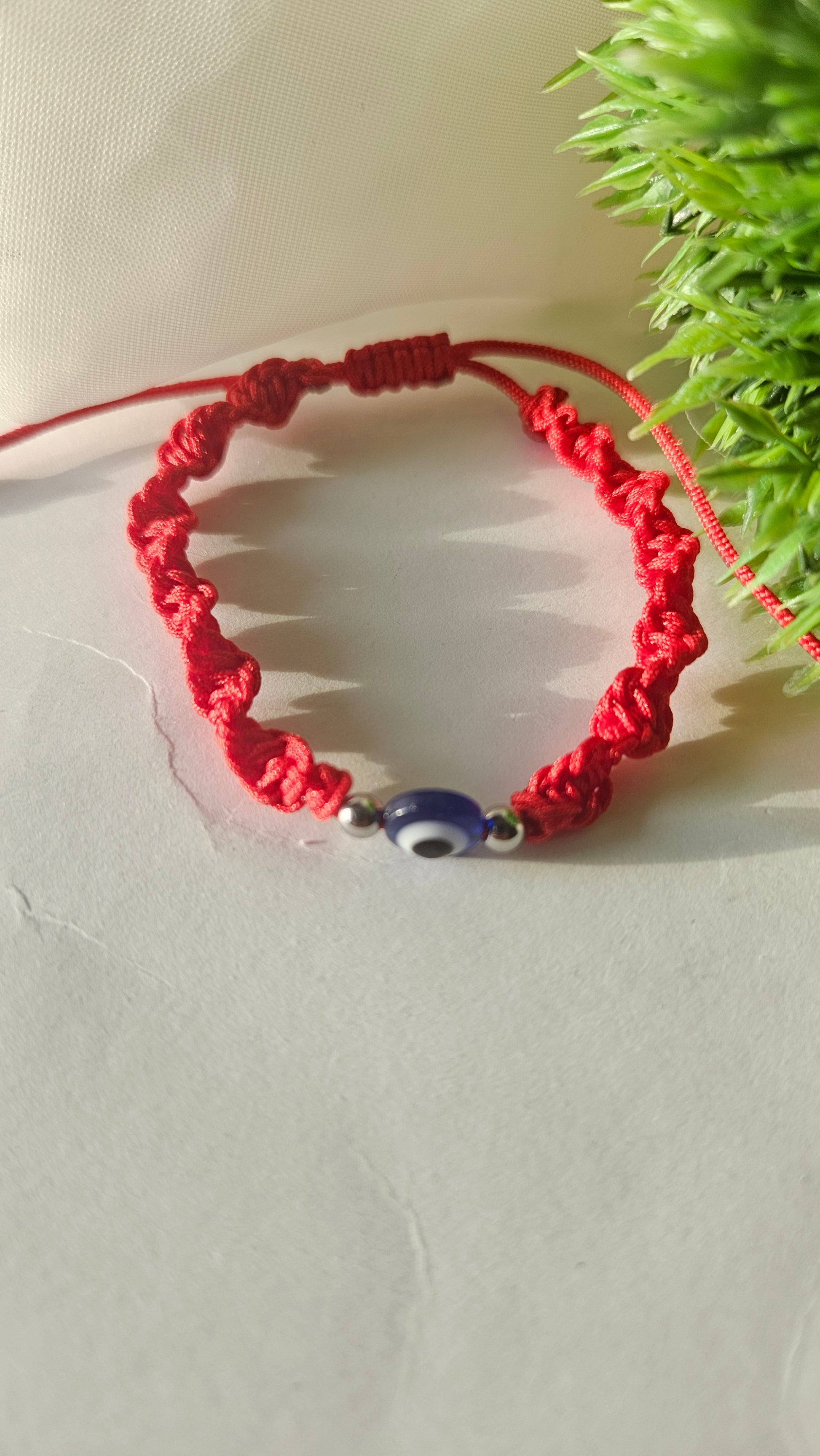 Handwoven with red macramé cord, this bracelet is a meaningful symbol of strength, protection, and positive energy. At its center, the classic evil eye bead is paired with your choice of gold or silver accents — so you can wear what resonates most with you.