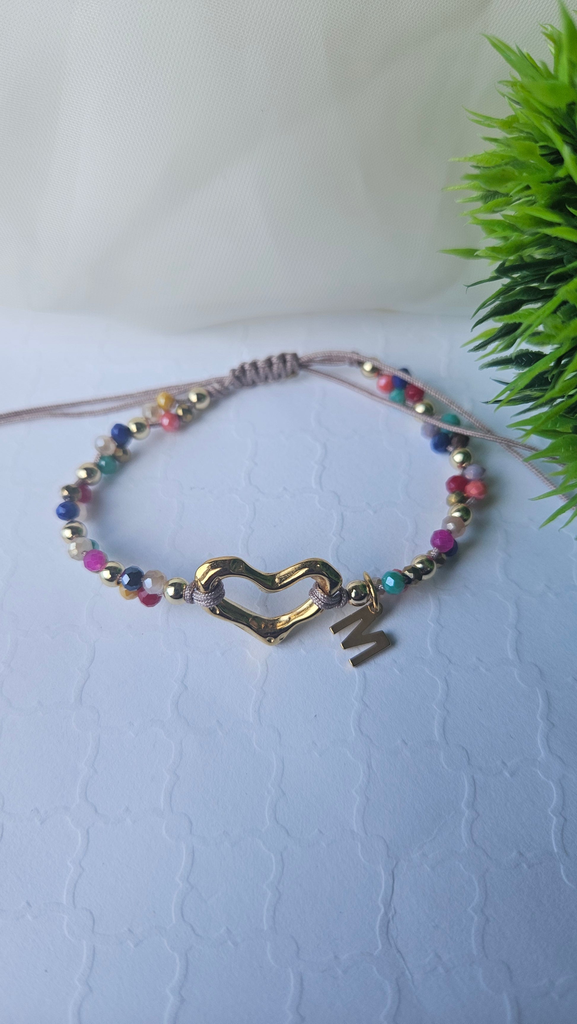 Thread Heart bracelet with initial. - Gold Heart- Initial - Crystal - Adjustable