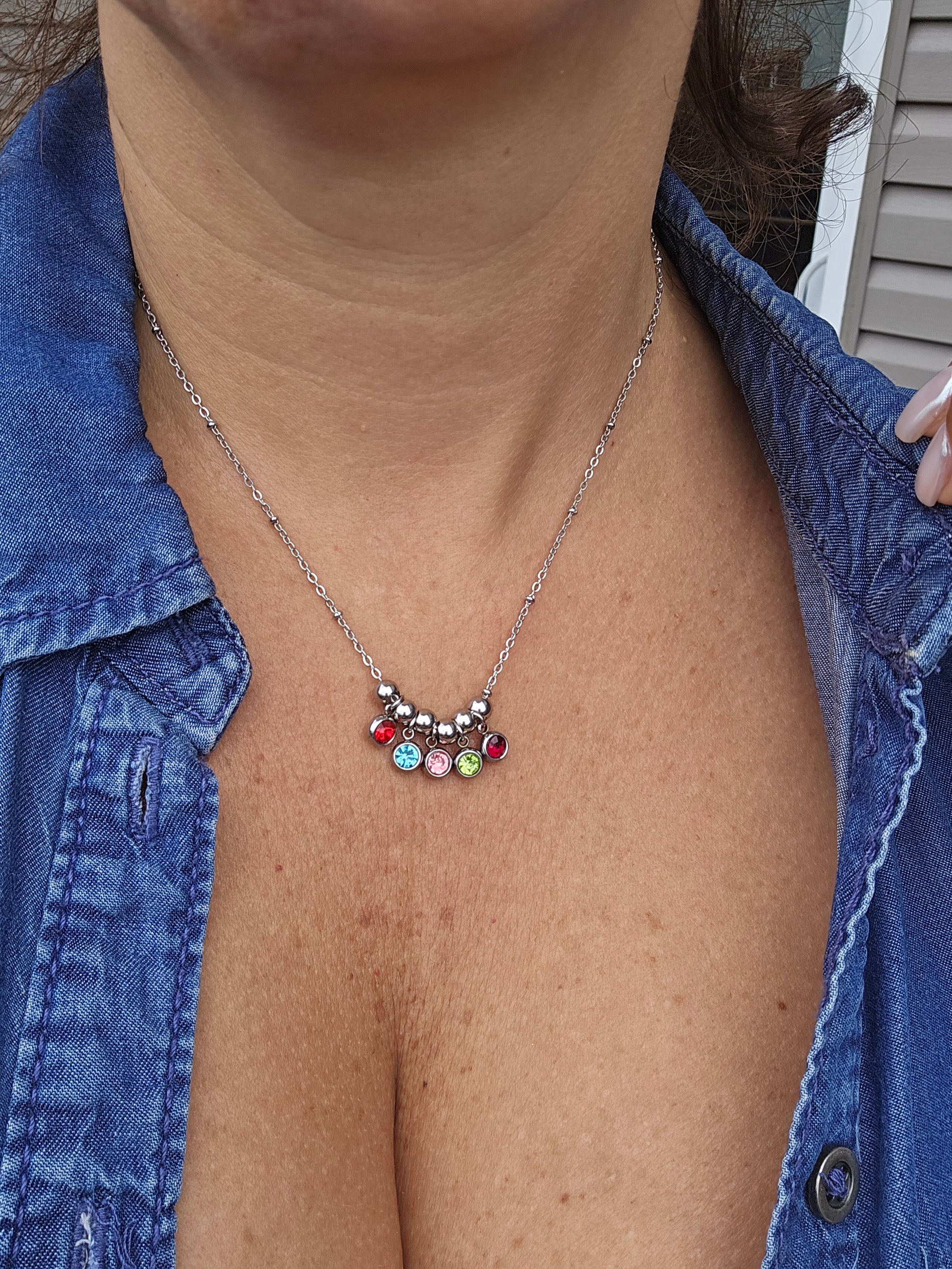Available in gold and silver, this necklace bursts with vibrant energy and meaning. Featuring colorful crystals hanging gracefully from a fine chain, this piece represents the emotions, memories, and moments that shape who you are.